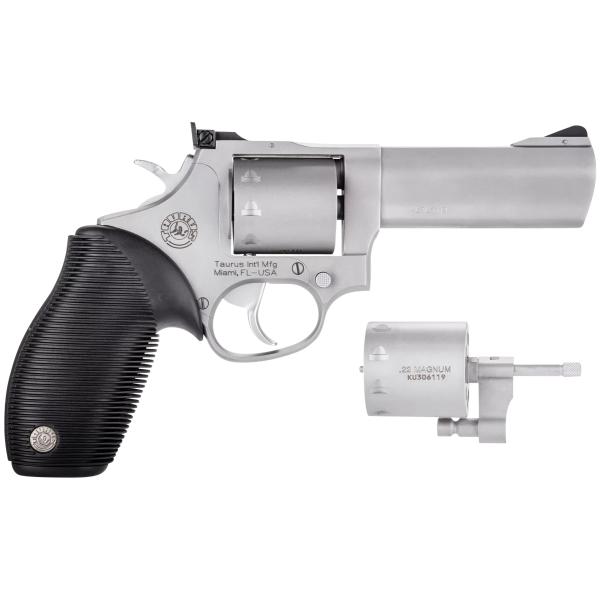 The Taurus 992 Tracker delivers good performance and accuracy in a lightweight and reliable revolver design. It comes chambered in .22 LR and .22 Mag with a 4 inch barrel. Features include a rubber grip, a fixed front sight, an adjustable rear sight, and a 9 round capacity.